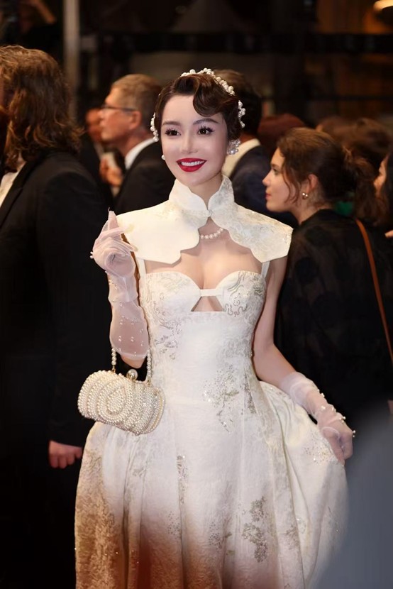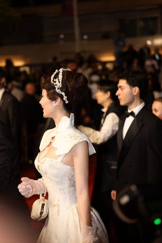 設(shè)計師以浪漫的懷舊復(fù)古發(fā)型,朱芷瑩通過張力完美詮釋了"攻擊性時尚"概念,成為戛納電影節(jié)備受關(guān)注的亞洲面孔。